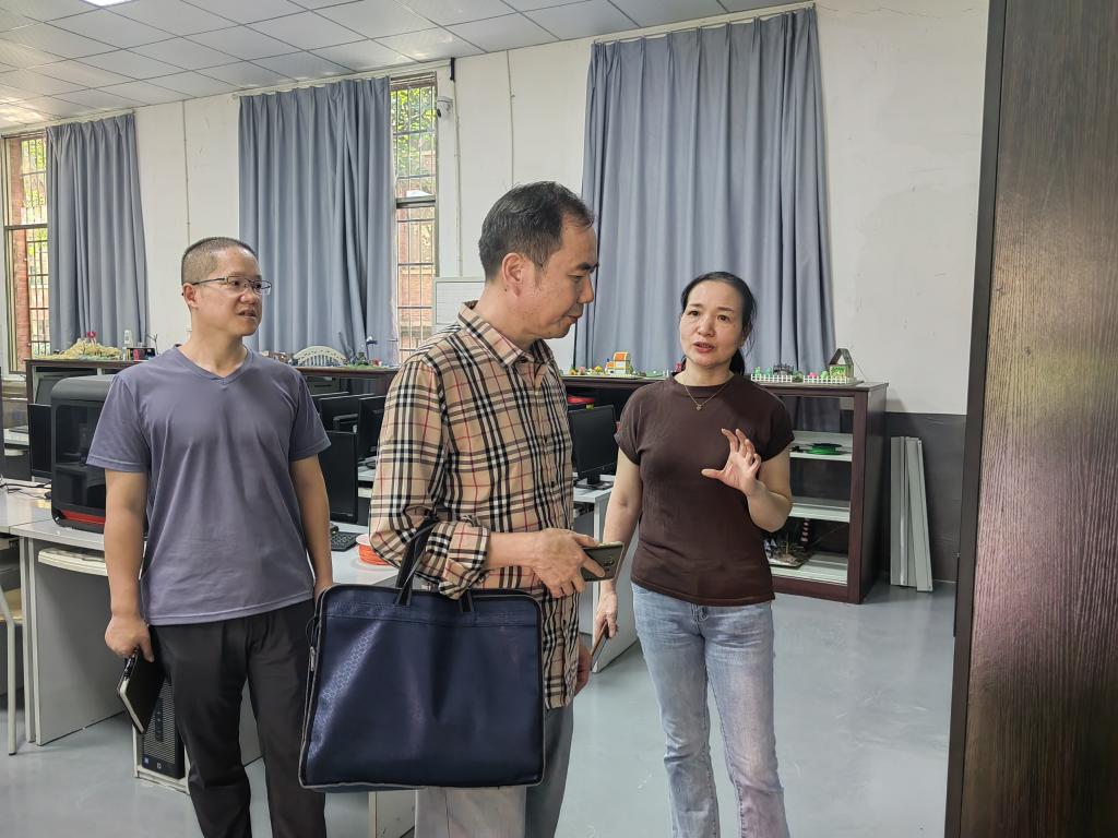 王应龙一行参观了学院的工程实践文化园、科普长廊以及各个科普实践场所,对基地的规模、设施进行了考察。胡晓东就科普基地的运作管理、科普设施、活动项目等情况进行了简要汇报。