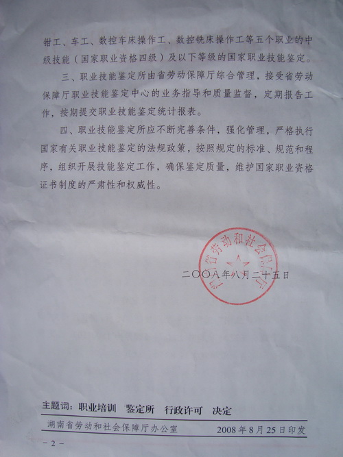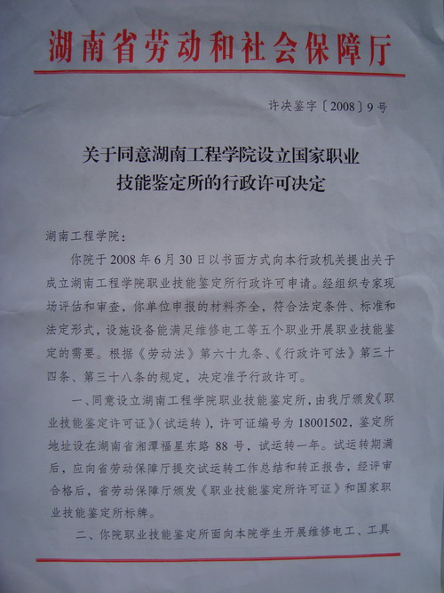 为落实党中央、国务院提出的“科教兴国”的战略方针,积极推行学历文凭与职业资格证书并重的制度,凸显我校应用型本科院校的办学特色,把大学生培养成知识技能型、技术复合型、专业适应型人才,2008年6月,我校向湖南省劳动和社会保障厅申请设立“太阳成国家职业技能鉴定所”, 开展维修电工、数控车床操作工、数控铣床操作工、钳工、车工等五个工种的初、中级职业技能培训鉴定工作。2008年7月20日,湖南省劳动和社会保障厅职业技能鉴定指导中心专家组莅临我校工程训练中心进行了现场评审。专家组听取了成立鉴定所的情况汇报,考察了工程训练中心实训设备等设施。最后经省劳动和社会障厅综合评审,批准我校设立“太阳成国家职业技能鉴定所”。