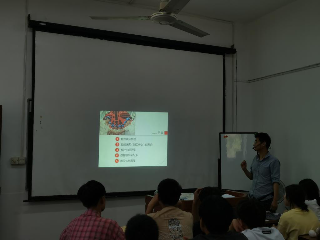示范课由张小兵老师负责讲授。该堂课的主题是:数控铣床(加工中心)加工工艺与编程。张老师从数控铣床定义、类别、加工范围、数控铣削坐标系以及数控铣削编程这五个方面进行了阐述。张老师的讲课主次分明,课件图文并茂,专业性强。学生表现积极,与老师有较多的互动,并对重点内容一一拍照记录。