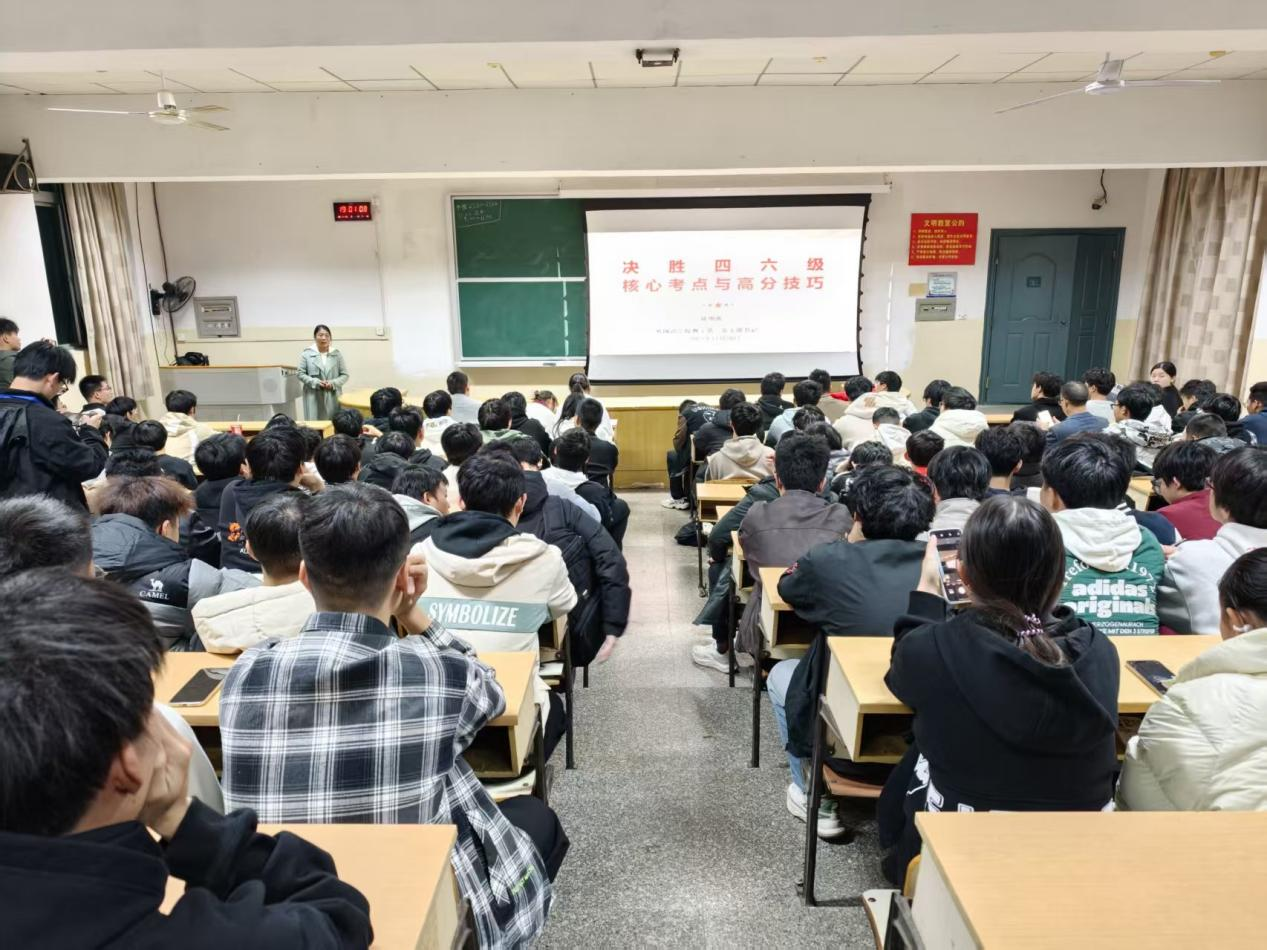 杨文奎在开场致辞中指出,学院针对四六级备考关键节点的共性困惑,举办此次讲座,鼓励同学们坚定信心、锚定目标、科学备考,全力决战四六级考试。