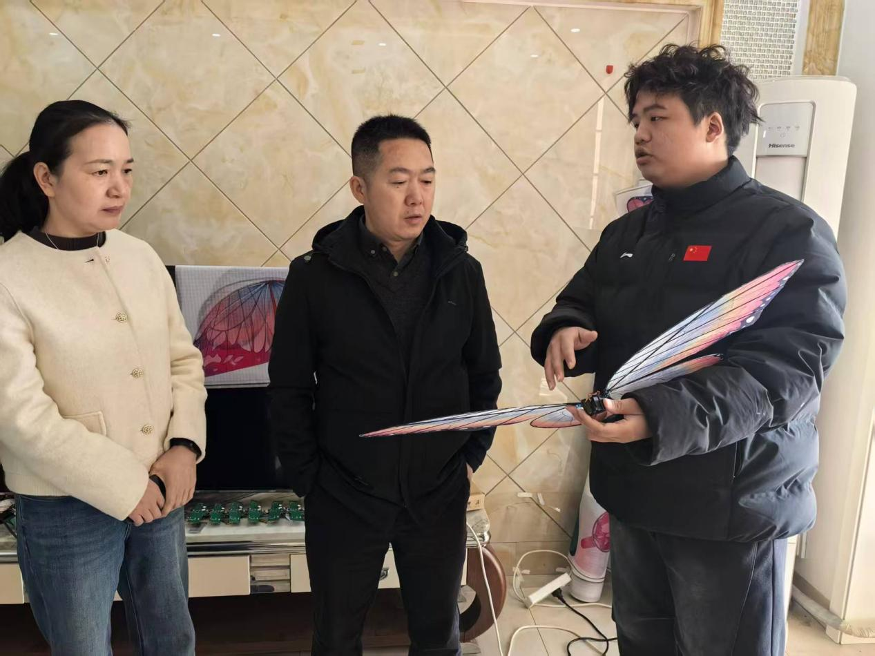 调研现场,创业团队现场展示了公司研制的产品——仿生蝴蝶机器人的运行效果,受到了陈国强一行的高度评价。