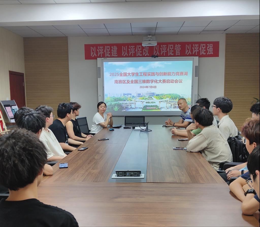 7月6日, 2025全国大学生工程实践与创新能力大赛湖南赛区暨全国三维数字化大赛赛前动员会议在tyc7111cc太阳成集团204会议室举行。会议由学院学科竞赛办公室主任刘伟成主持,学院院长胡慧出席,学校参加竞赛的学生代表参加了会议。